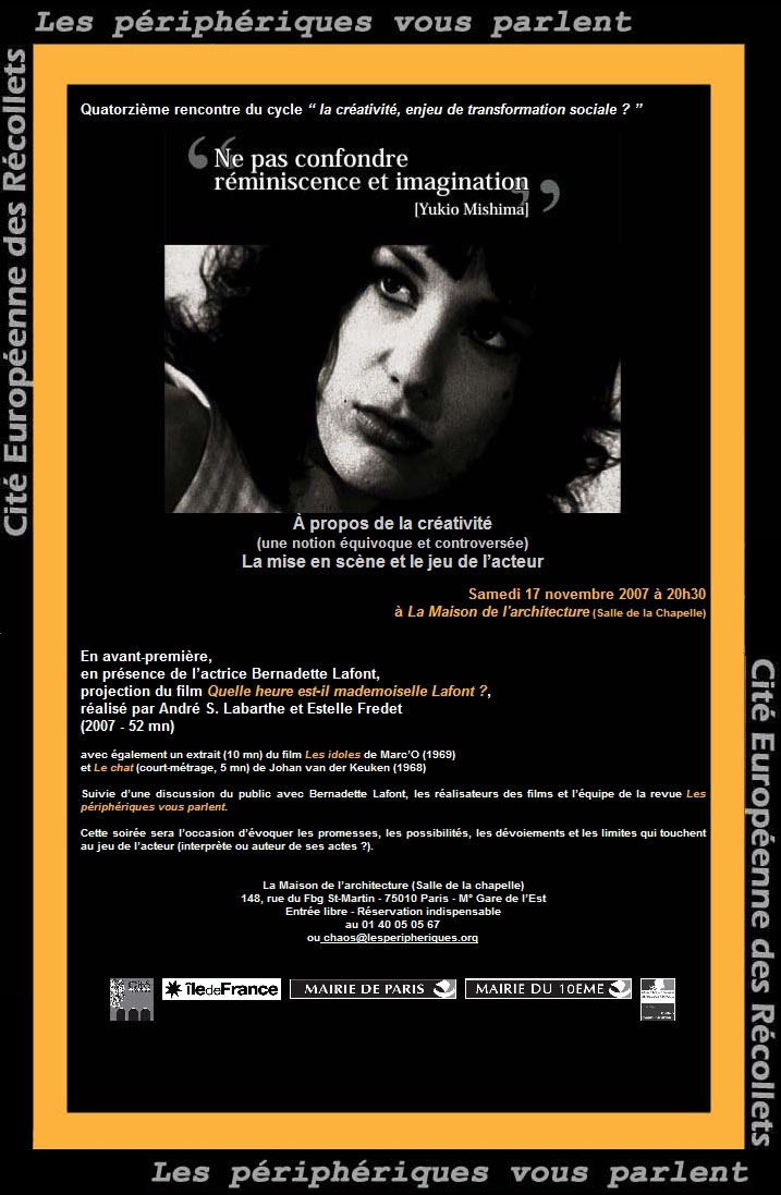 Avant-première, en présence de l’actrice Bernadette Lafont, du film Quelle heure est-il mademoiselle Lafont ?, réalisé par André S. Labarthe et Estelle Fredet